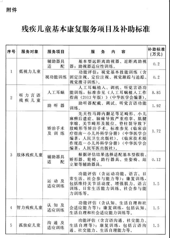 附件:殘疾兒童基本康復(fù)服務(wù)項目及補助標(biāo)準(zhǔn)